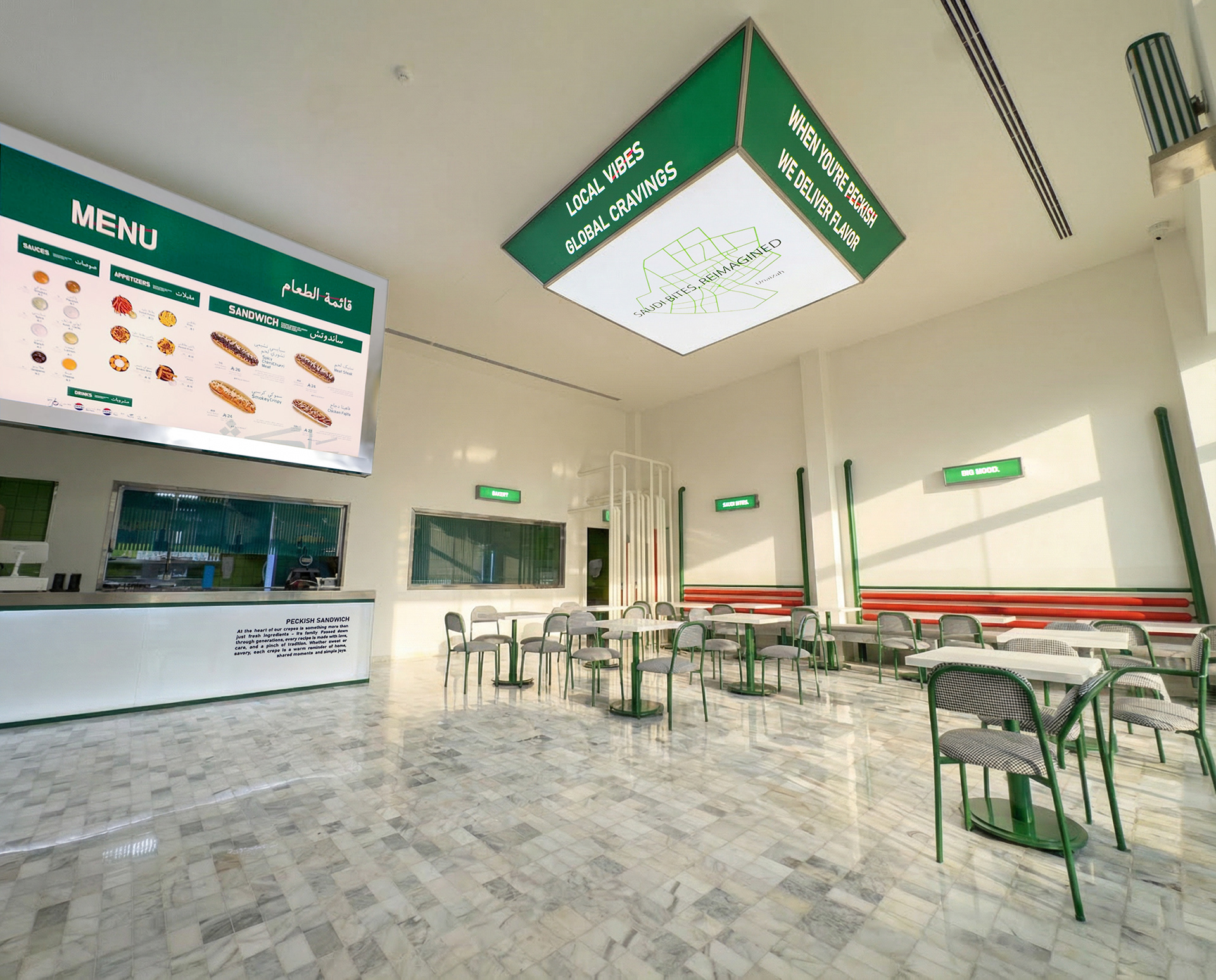 Raven is proud to deliver the creative touches and final finishing for the peckish Restaurant project, as part of its comprehensive services in commercial development, interior design, and brand identity. Riven carefully executed the interior and exterior signage, creating an environment that blends modern aesthetics with visual warmth through curated materials and lighting, enhancing the visitor experience and the brand’s presence. The Shamandar project reflects Riven’s commitment to fully integrated design solutions, driven by quality, precision, and the creation of strong brand identities that support long-term growth and sustainability.